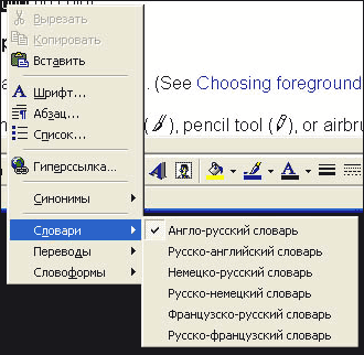 Меню "Сервис" краткое, но весьма полезное. Оно позволяет подключить функции перевода в Microsoft Word.