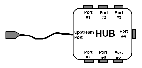 Концентратор (хаб). Позволяет множественные подключения к одному порту, создавая дополнительные порты. Каждый хаб имеет один восходящий порт, предназначенный для подключения к имеющемуся в наличии свободному порту, и несколько нисходящих, к которым могут быть подключены или снова концентраторы, или конечные устройства, либо совмещенные устройства.