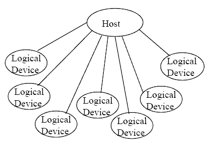 Обратите внимание, на то, что на пятом уровне комбинированное устройство использоваться не может. Кроме того отдельно стоит упомянуть о хосте, являющемся скорее программно-аппаратным комплексом, нежели просто устройством. Физическая топология шины - звезда