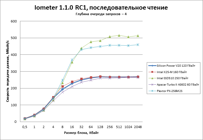 Показатели бенчмарков Silicon Power V20 мы будем сравнивать с достижениями других твердотельных накопителей, которые мы протестировали за последнее время. Ближайшим соперником V20 станет Apacer Turbo II AS602. Plextor PX-256M2S и Intel SSD 510 представят новое поколение SSD с поддержкой SATA 3.0.