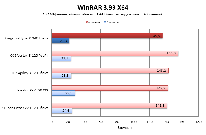 Небольшое преимущество у HyperX есть и при работе с архиватором WinRAR.