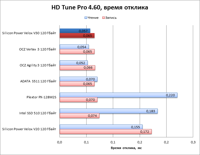 В общих чертах быстродействие и особенности работы приводов на SF-2200 нам уже известны. С определенными оговорками можно признать, что более быстрых SSD на потребительском рынке еще не существует. За подробностями отсылаем вас к предшествующим обзорам моделей на SandForce SF-2200 объемом 60, 120 и 240 Гбайт от различных производителей, а сейчас сосредоточимся на Silicon Power Velox V30.