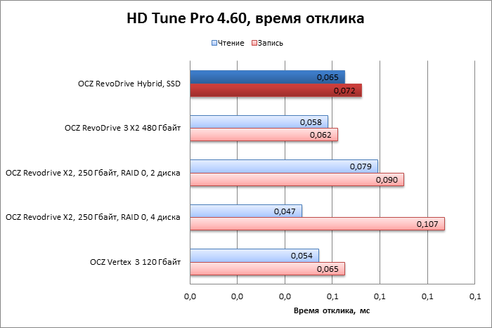 • В результате длительного теста жесткий диск RD Hybrid уже заметно уступает по времени отклика обоим соперникам.