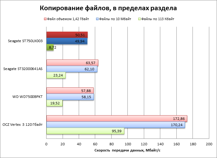 В этой задаче Momentus XT оказался заметно медленнее диска WD, особенно при работе с файлами небольшого размера.