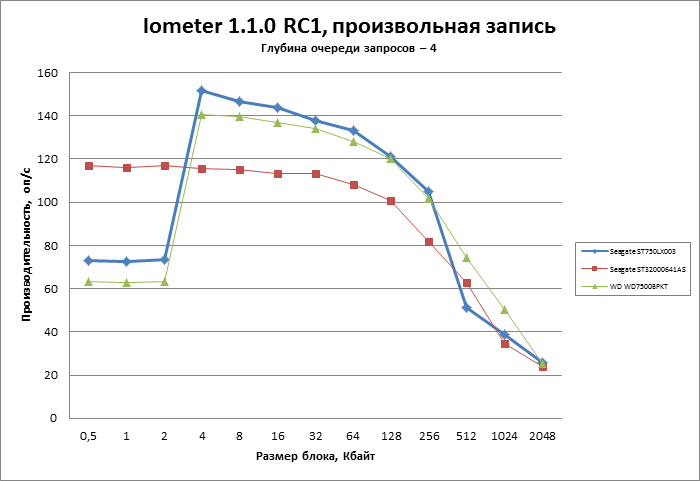 Этот тест эмулирует работу распространенных приложений, создающих интенсивную нагрузку на жесткий диск с определенным паттерном доступа. На диаграмме приведены результаты Momentus XT при первом проходе теста и при четвертом. В последнем случае диск достигает максимума производительности.