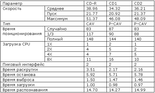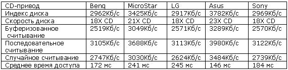 Сегодня у нас новый сравнительный тест бюджетных моделей CD-приводов. Бюджетные - это значит недорогие, которыми сейчас комплектуются, как правило, собираемые компьютеры. В тестах приняли участие только 52-скоростные модели от компаний Asus, Benq, LG, MicroStar и Sony. По цене приводы колеблются от 17 до 23 долларов. В лидерах по стоимости Asus, за ним Sony, а дальше плотной группой Benq, LG и MSI. Эта статья для тех, кто приобретает готовые компьютеры, куда заботливые сборщики уже устанавливают одну из моделей. А на вопрос, а какой привод лучше, как правило, отвечают: "Да все они 52-х скоростные" или "Ну возьмите Sony - не прогадаете". Все приводы оснащены лазером 1-го класса. Benq и Asus с Тайваня, остальные чистокровные "китайцы". Производители приводов в технических характеристиках заявляли следующее: Характеристики Asus CD-S520/A4 Имеет антивибрационную технологию DDSS II (Double Dynamic Suspension System II). Asus обещает, что эта технология позволяет сочетать в себе высокие скорости с высокой надежностью и позволяет точно позиционировать головку привода для считывания данных. Скорость вращения шпинделя до 10 400 об/мин, а передачи данных до 7800 Кб/с. Использует UDMA/33 и благодаря этому режиму прямого доступа к памяти снижает загрузку микропроцессора при работе. На передней панели имеет разъем для наушников, регулятор громкости и кнопку Play и перехода на следующий трек. Можно выгружать и загружать диск через tray. ![]() Asus, как обычно, не поскупился на техническую информацию о своих устройствах. Указал даже шумность и количество выработки часов на отказ. Например, LG был куда лаконичнее: Характеристики LG GCR-8523B ![]() Характеристики Sony CDU5211 ![]() Характеристики Benq 652A Делает акцент при продвижении своего товара на простоту обновления программного обеспечения и наличие флэш-памяти. Поддержку UDMA со скоростью передачи данных 33,3 Мбайт/с. И циклическую проверку избыточности (CRC) для выявления любых ошибок при передаче данных. Хотя во всем этом немного удивительного. ![]() Характеристики MicroStar MS-8152 ![]() MSI отличается от своих конкурентов меньшими размерами. Глубина этого привода на 2 сантиметра меньше, чем у остальных. Можно говорить о лучшей вентиляции корпуса в этой связи, но всё-таки не настолько конкурентно это преимущество. Методика тестирования: Тестовым стендом служил следующий компьютер: