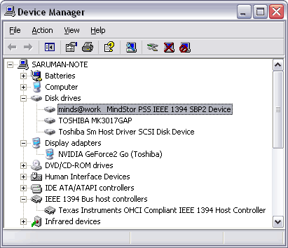 Не перестаёт техника преподносить сюрпризы. Казалось бы, уже хватит мучать несчастный накопитель. Подключение по FireWire от подключения по USB должно, наверное, отличаться лишь скоростью. Оказывается, не всё так просто. Прежде всего, автоматически, система наш MindStor, подключенный по USB, не ловит. Приходится устанавливать драйвер либо с CD, либо качать из интернета.