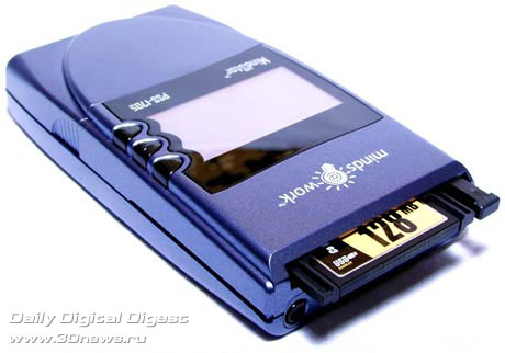 Но основной интерес MindStor вызывает вовсе не поэтому, а потому, что он оснащён слотом для подключения карт Flash памяти, на который и снимают цифровые фотоаппараты. При этом, чтобы не ограничиваться каким-то одним стандартом, компания Minds@Work не стала городить огород, и реализовала лишь PC Card слот. Изначально, MindStor совместим только с Compact Flash, так как в комплекте поставляется переходник CF-PCMCIA. Если ваша камера снимает на MMC, SM, SD или другой тип Flash памяти, покупаете переходник, который стоит довольно недорого, и подключаете карту с его помощью к MindStor.