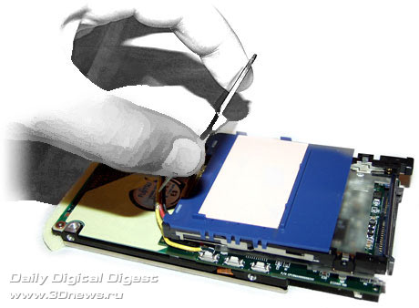 Теперь о минусах. Прежде всего, это цена. $470 за накопитель с 5 Гб HDD внутри, это очень немало. Хватит не только на парочку жёстких дисков по 120 гигабайт на каждом для домашнего ПК, но и на пиво останется. С другой стороны, модель на 20 Гб значительно привлекательнее по параметру стоимости одного мегабайта ёмкости. Уж если покупать, то пожалуй именно её. На помент написания обзора, в Москве такой привод стоил $610.