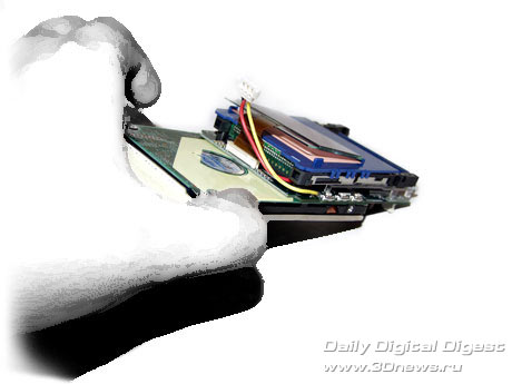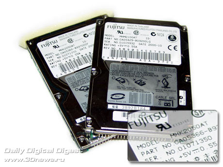 Как и следовало ожидать, жёсткий диск внутри MindStor, это Fujitsu MHK2050AT. Отключить его от основной платы-контроллера труда не составляет. Понятно, что наш исследовательский зуд просто не позволил пройти мимо такого вопиющего способа апгрейда, и мы установили взамен штатного пятигигабайтного накопителя другой Fujitsu, но на десять гигабайт. Угадайте, что же определил накопитель, включившись? А вот и неправильно... Ничего не определил. По всей видимости, на HDD хранится либо часть кода, либо специальный микро-код, позволяющий устройству определять носитель. Наверняка, как и в случае с ZIV и Creative JukeBox, это можно обойти, но в такие дебри технической мысли мы себе углубляться не позволили.
