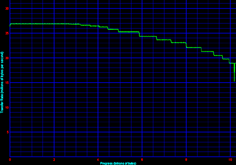Как видим, диск продемонстрировал замечательные скоростные характеристики. Почти во всех тестах он превзошел диск IBM DPTA, имеющий такую же скорость вращения шпинделя. Однако, немного расстроило вот какое обстоятельство - жесткие диски фирмы Quantum демонстрируют куда менее эффективную работу с аппаратным кэш-буфером, чем накопители от голубого гиганта. Имея значительно более высокие результаты в тесте Disk Transfer Rate (тест, показывающий скорость передачи данных между магнитной поверхностью и головками; Media to Bus), Quantum имел все шансы показать гораздо большие результаты в тестах WinMark. Но не показал... График последовательного чтения с диска показался нам правильным, с плавным небольшим снижением скорости к концу диска, при этом большого кол-ва remap-блоков обнаружено не было.