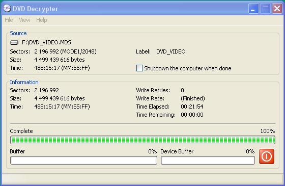 Для этих опытов мы выбрали однослойный диск c записью концерта "A Tribute To Stevie Ray Vaughan", который по размерам как раз почти целиком занимает болванку. Вооружившись программой DVD Decrypter, мы создали в режиме ISO Write расшифрованный образ диска, который и записали потом на болванки всех четырех типов.