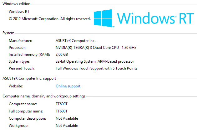 ASUS VivoTab RT TF600T: «таблетка» на Windows RT