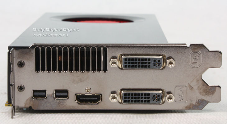 На задней панели тестового образца Radeon HD 6790 располагаются: два разъема Mini DisplayPort, один HDMI 1.4A, два DVI (DL-DVI + SL-DVI). Особо отметим тот факт, что AMD Radeon HD 6790 поддерживает интерфейс DisplayPort версии 1.2, об отличиях от предыдущей версии читайте тут.
