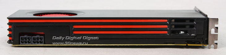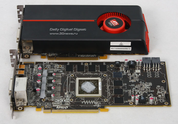 К нам в лабораторию попал тестовый образец AMD Radeon HD 6790, без опознавательных знаков. По сути, это обычная видеокарта Radeon HD 6870, модифицированная, скорее всего, посредством прошивки для демонстрации возможностей Radeon HD 6790. По нашей информации, ускорители HD 6790, представленные партнёрами AMD, будут отличаться, а потому особого смысла в подробном описании тестового образца нет. Остановимся лишь на основных вещах, чтобы примерно представлять, чего ждать от ускорителей, произведённых сторонними компаниями.