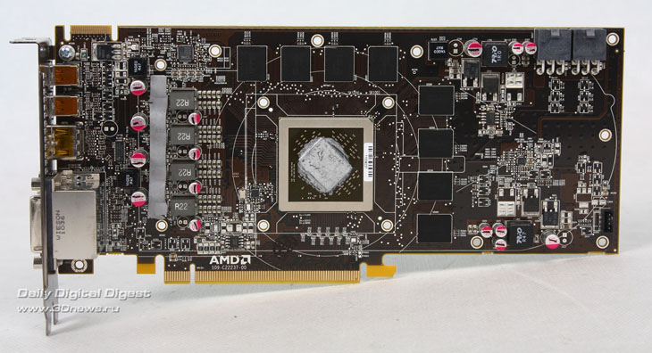 Глядя на разводку тестовой платы Radeon HD 6790, ещё раз убеждаемся в том, что различий с эталонной версией ускорителя Radeon HD 6870 нет.