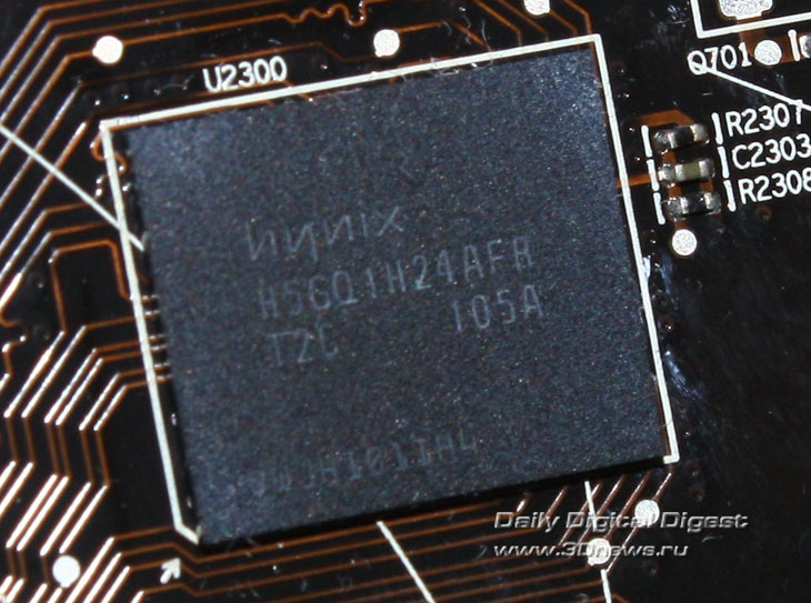 Общий объем установленной на борту AMD Radeon HD 6790 видеопамяти равен 1 Гбайт. Микросхемы произведены компанией Hynix, их маркировка — H5GQ1H24AFR, а номинальная частота равна 5 ГГц QDR. Рабочая частота видеопамяти на Radeon HD 6790 заметно ниже — 4.2 ГГц QDR.