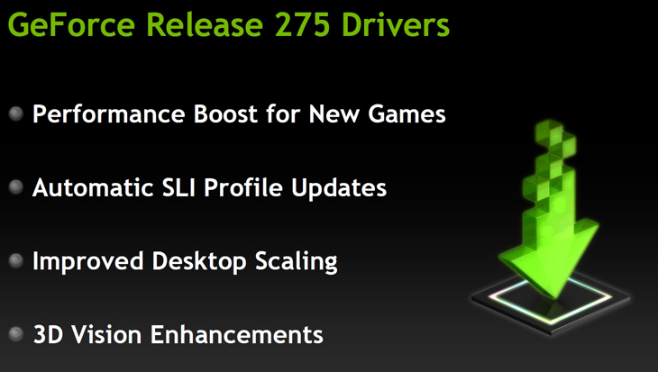 В последней версии драйверов программисты NVIDIA не только увеличили производительность ускорителей, но и ввели ряд достаточно интересных функций. В частности, всем владельцам современных видеокарт GeForce доступно настраиваемое автоматическое обновление как самого драйвера, так и SLI-профилей, более того, в будущем появится возможность обновлять автоматом ещё и 3D Vision-профили. Также были усовершенствованы режимы масштабирования не только для аналоговых, но и для цифровых устройств вывода.
