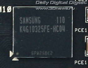 Память, установленная на ASUS Matrix GTX580 Platinum, произведена компанией Samsung и несёт маркировку K4G10325FE-HC04. Номинальная частота такой памяти составляет 5 ГГц QDR, в то время как работает она на частоте 4 ГГц — есть надежда на хороший разгон.