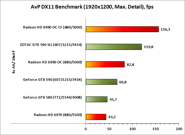 | Alien versus Predator DX 11 Benchmark | Очень высокая детализация, 1920x1200/ 1680x1050 no AA/AF Очень высокая детализация, 1920x1200/ 1680x1050 4xAA/AF |