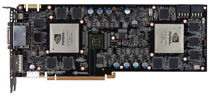 Сама плата является точной копией эталонного решения NVIDIA. Разница заключается лишь в наклейке на кожухе системы охлаждения. Тактовые частоты, на которых работает ZOTAC GeForce GTX 590, также совпадают с рекомендованными NVIDIA значениями. С одной стороны, безусловно, хотелось бы видеть оригинальную разработку инженеров ZOTAC, поскольку эталонные платы NVIDIA не отличаются высоким разгонным потенциалом, и над этим стоило бы поработать. С другой — GTX 590, как мы уже выяснили, и без разгона показывает достойную производительность, так что для большинства покупателей этот фактор не будет решающим.