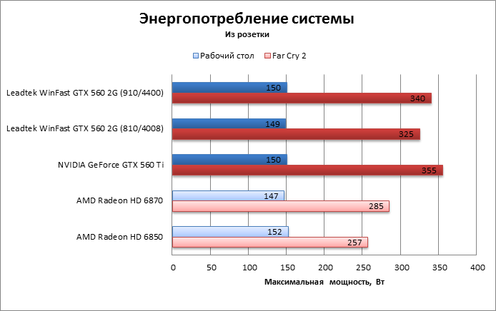 По энергопотреблению GTX 560 находится в той же категории, что и «Титаниум». Отметим, что Radeon HD 6870 — основной соперник 560-ой — не столь прожорлив.