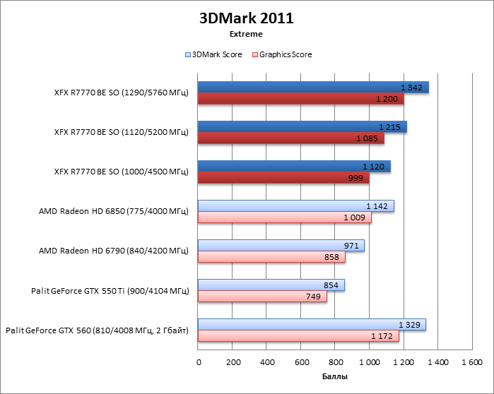 Сам герой настоящего обзора прошел бенчмарки как на своих штатных тактовых частотах (1120 и 5200 МГц для процессора и памяти соответственно), так и на частотах референсных моделей Radeon HD 7770 (1000 и 4500 МГц).
