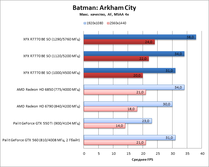 | Batman: Arkham City. Встроенный бенчмарк | DirectX 11 | Макс. качество | AF, MSAA 4x | 1920х1080 / 2560х1440 |