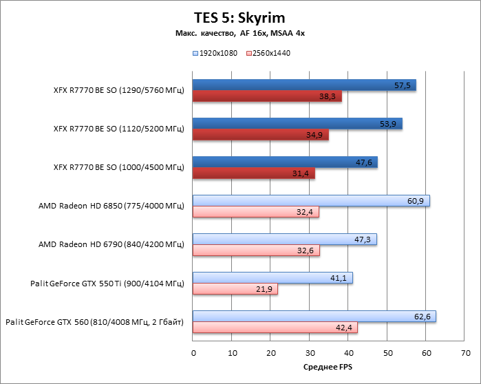 | The Elder Scrolls 5: Skyrim + FRAPS | DirectX 9 | Город Whiterun. Макс. качество | AF 16x, MSAA 4x | 1920х1080 / 2560х1440 |