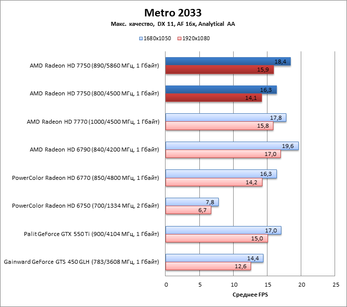 | Metro 2033 + Metro 2033 Benchmark | DirectX 11 | Макс. настройки, DirectX 11, DOF, тесселяция, NVIDIA PhysX выкл. | AF 16x, Analytical AA | 1680x1050 / 1920х1080 |