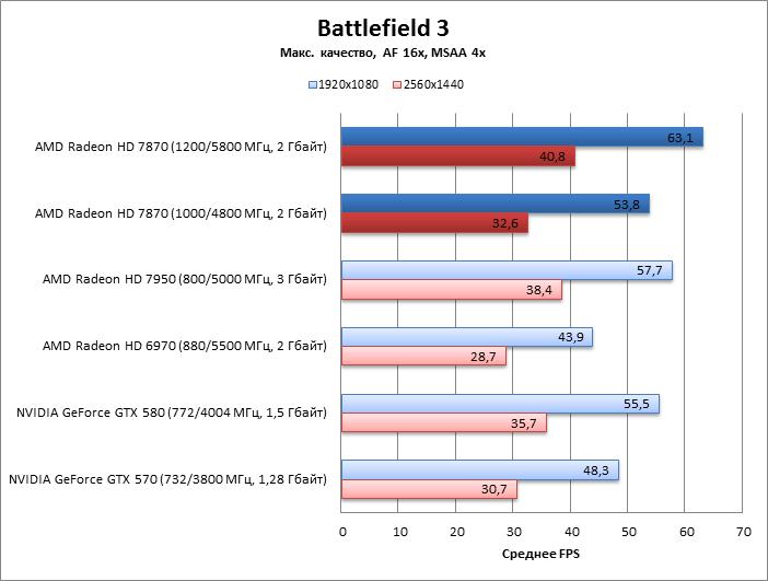 | Battlefield 3 + FRAPS | DirectX 11 | Начало миссии Going Hunting. Макс. качество | AF 16x, MSAA 4x | 1920х1080 / 2560х1440 |