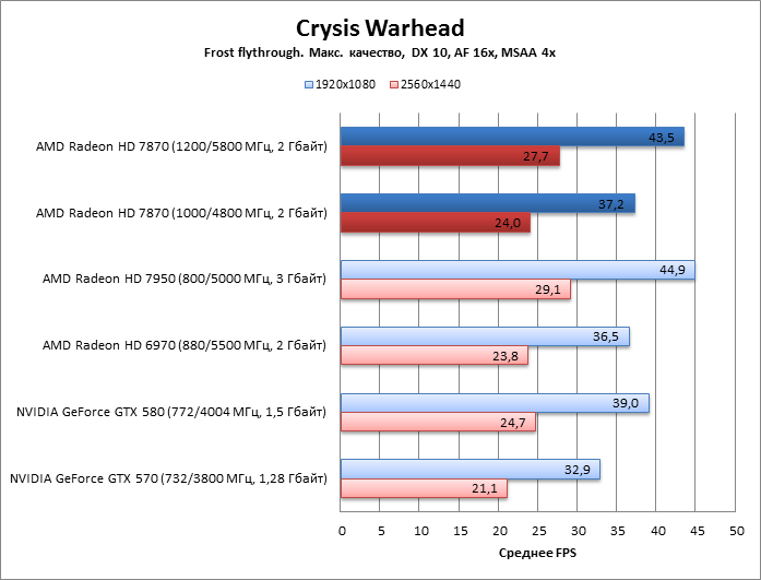 | Crysis Warhead + Framebuffer Crysis Warhead Benchmarking Tool | DirectX 10 | Frost flythrough. Макс. настройки, DirectX 10 | AF 16x, MSAA 4x | 1920х1080 / 2560х1440 |