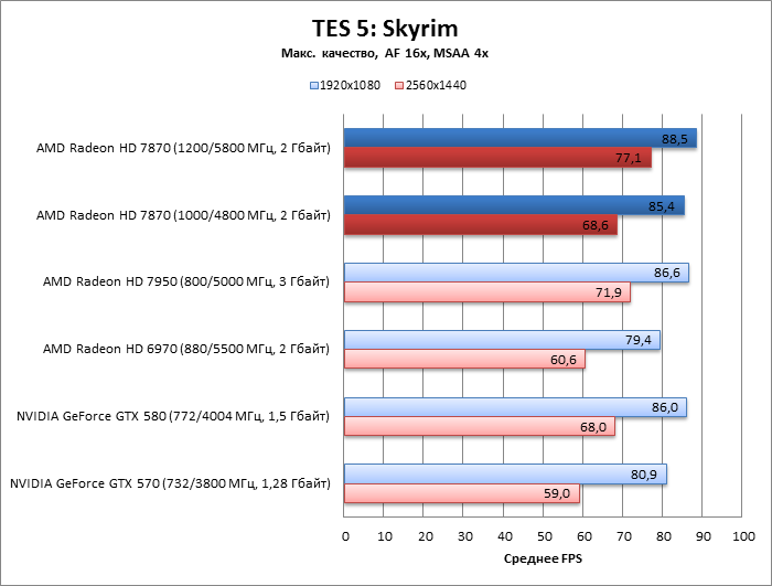 | The Elder Scrolls 5: Skyrim + FRAPS | DirectX 9 | Город Whiterun. Макс. качество | AF 16x, MSAA 4x | 1920х1080 / 2560х1440 |