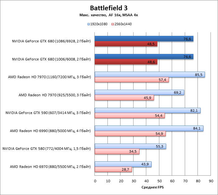 | Battlefield 3 + FRAPS | DirectX 11 | Начало миссии Going Hunting. Макс. качество. | AF 16x, MSAA 4x | 1920х1080 / 2560х1440 |