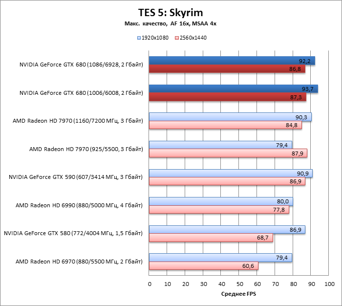 | The Elder Scrolls 5: Skyrim + FRAPS | DirectX 9 | Город Whiterun. Макс. качество | AF 16x, MSAA 4x | 1920х1080 / 2560х1440 |