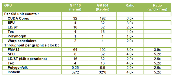 Конфигурация потоковых мультипроцессоров в GK104 и GF100/110