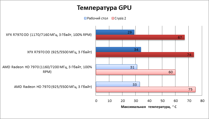 Практической разницы между XFX R7970 DD и референсом нет как без разгона, так и с ним.