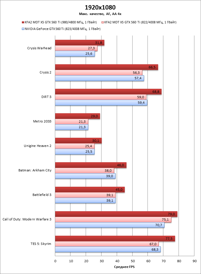 | Crysis Warhead + Framebuffer Crysis Warhead Benchmarking Tool | DirectX 10 | Frost flythrough. Макс. настройки, DirectX 10 | AF 16x, MSAA 4x | 1920х1080 / 2560х1440 |