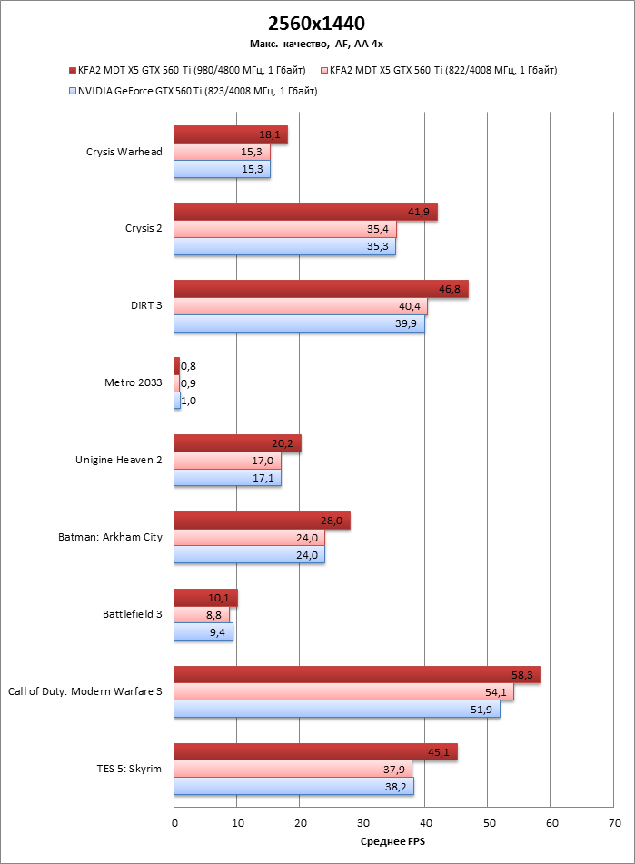 | Batman: Arkham City. Встроенный бенчмарк | DirectX 11 | Макс. качество | AF, MSAA 4x | 1920х1080 / 2560х1440 |