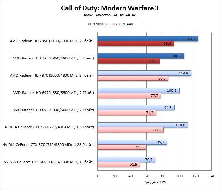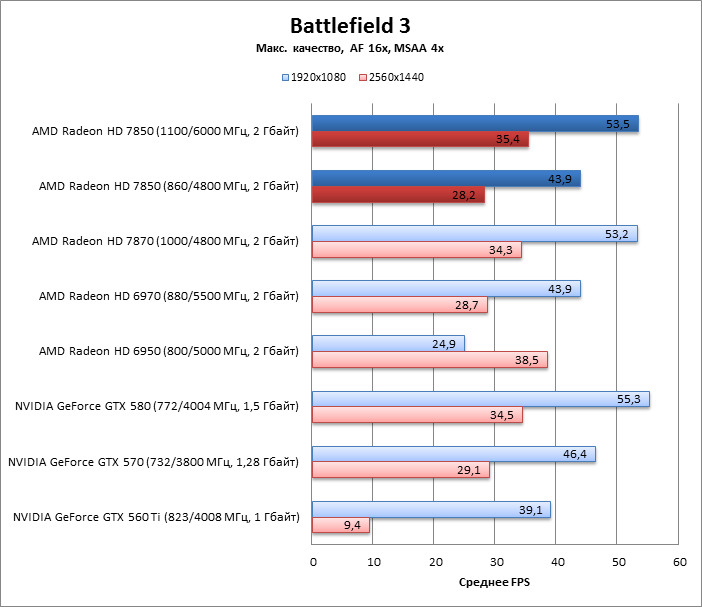 | Battlefield 3 + FRAPS | DirectX 11 | Начало миссии Going Hunting. Макс. качество | AF 16x, MSAA 4x | 1920х1080 / 2560х1440 |