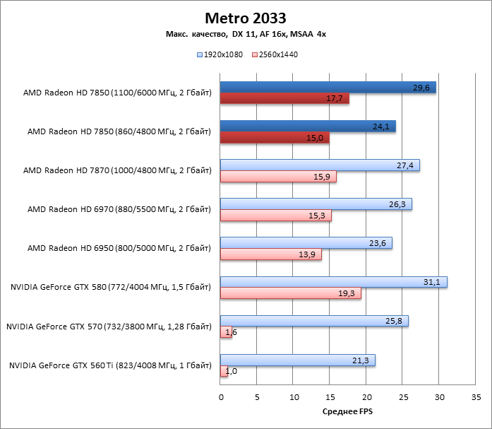 | Metro 2033 + Metro 2033 Benchmark | DirectX 11 | Макс. настройки, DirectX 11, DOF, тесселяция, NVIDIA PhysX выкл. | AF 16x, MSAA 4x | 1920х1080 / 2560х1440 |