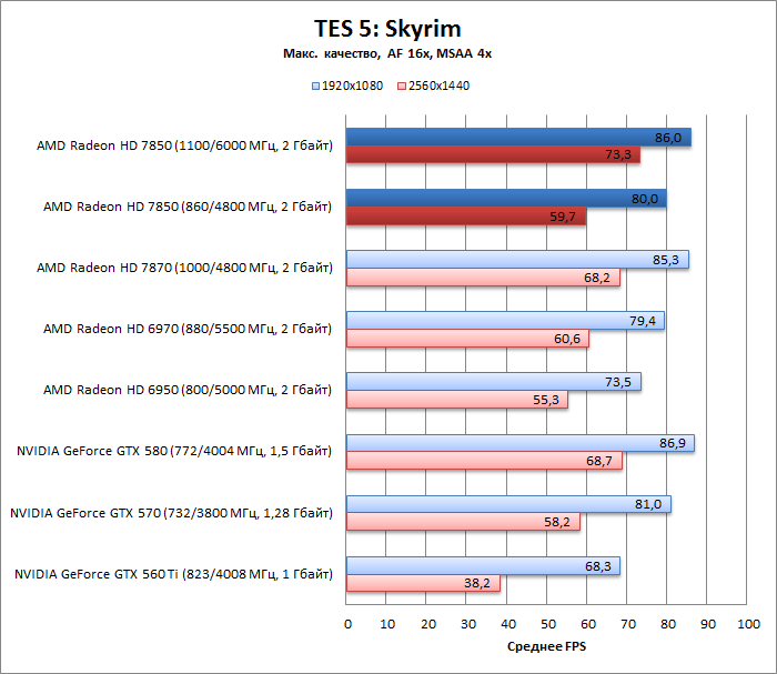 | The Elder Scrolls 5: Skyrim + FRAPS | DirectX 9 | Город Whiterun. Макс. качество | AF 16x, MSAA 4x | 1920х1080 / 2560х1440 |