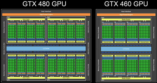 Стоит отметить, что ни одна из доступных в продаже видеокарт GeForce GTX 460 не использует полноценный чип GF104. И даже на старшие модификации GeForce GTX 460 с 1 Гб видеопамяти устанавливается графический процессор GF104, в котором один из потоковых мультипроцессоров деактивирован. Скорее всего, это сделано для того, чтобы избежать внутренней конкуренции между видеокартами GeForce GTX 460 и GeForce GTX 470.