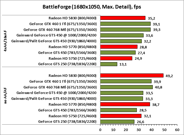| NVIDIA GeForce GTS 450 1 Гб | NVIDIA GeForce GTX 460 768 Мб | NVIDIA GeForce GTX 460 1 Гб | AMD Radeon HD 5750 1 Гб | AMD Radeon HD 5770 1 Гб | |
