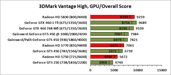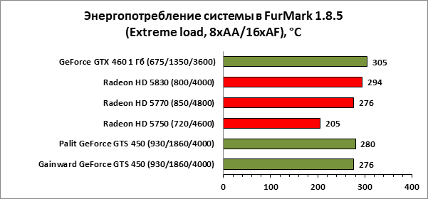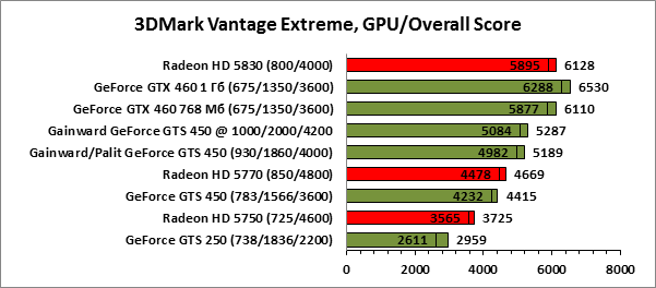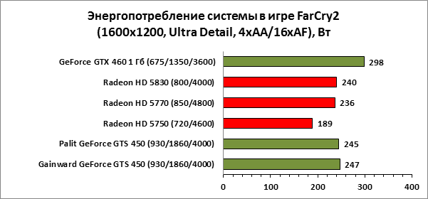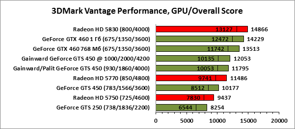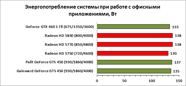 Благодаря повышенным рабочим частотам ускорители GeForce GTS 450 производства Palit и Gainward во всех без исключения режимах чувствуют себя более уверенно, нежели Radeon HD 5750, однако, в целом, этого недостаточно для успешной конкуренции с Radeon HD 5770.