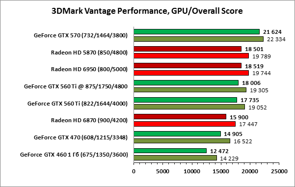 Ну а теперь давайте посмотрим на что способен ускоритель GeForce GTX 560 Ti в 3D-приложениях. Сразу оговоримся, что за несколько дней до выхода материала мы получили новый драйвер Catalyst от AMD под номером 11.1a. Среди улучшений значилось увеличение производительности ускорителей Radeon HD 68xx/69xx в таких приложениях как 3DMark Vantage, Unigine Heaven OpenGL, Alien versus Predator, Crysis Warhead и другие. Мы провели тестирование с новым драйвером, однако в нашем случае изменения были заметны лишь в синтетическом тесте 3DMark Vantage. В то же время игры не реагировали на смену драйвера, разница в результатах редко составляла более 0,5-1,5 fps. Поэтому мы приводим значения, полученные с новой версией драйверов, только в результатах синтетических пакетов компании Futuremark.