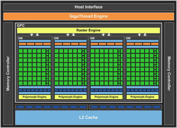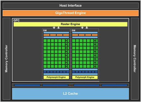 Блок схема GPU GF108, использованного при производстве GeForce GT 430