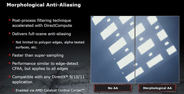Для любителей максимального качества картинки AMD приготовила приятный сюрприз. Владельцам Radeon HD 5xxx/6xxx станет доступен новый метод полноэкранного сглаживания – Morphological AA
