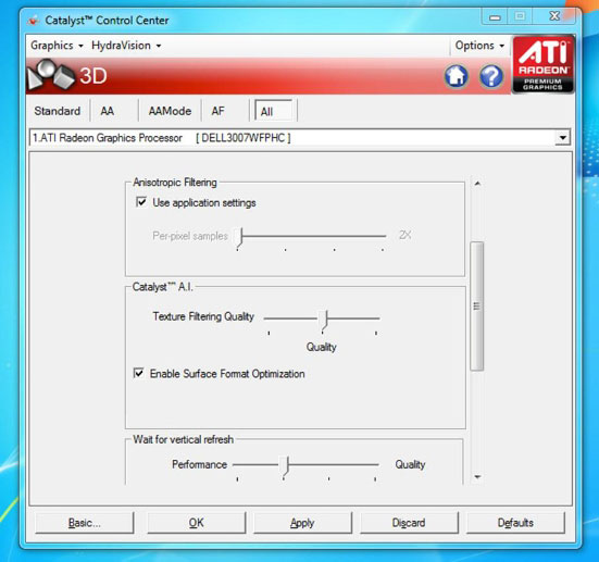 Для Radeon HD 6850/6870 в новых драйверах AMD станут доступны новые варианты настройки Catalyst A.I. Изменение этих параметров влияет на качество фильтрации текстур. Доступны три положения: