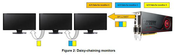 Главные отличия заключаются в существенно увеличенной пропускной способности DP 1.2, а также поддержке технологии Multi-Stream, благодаря которой к одному порту DP можно подключить несколько мониторов.